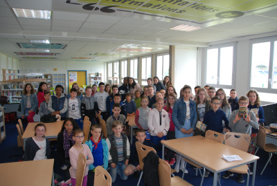 Ce projet a démarré au premier trimestre de l’année scolaire. Les élèves de CM2 et de sixièmes ont lu une sélection commune de dix ouvrages de fictions (8 romans et 2BD) depuis le mois d’octobre 2017. Lors de ces journées Défi lecture, les élèves se sont affrontés par équipes mixtes (2 élèves de CM2 et 2 élèves de 6es) en passant par quatre ateliers : L’Atelier Time’s Up (jeu sur les personnages des livres), l’Atelier Lecture à voix haute (lecture d’un extrait à quatre voix devant les autres équipes), l’Atelier Illustration (création d’une couverture de roman) et enfin l’Atelier Quiz (31 questions portant sur les dix ouvrages). Pour ce dernier atelier, nous avons utilisé l’application Kahoot qui nous a permis de transformer les tablettes numériques du collège en boîtiers de vote.