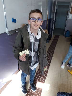 Enzo, élève de 5èmeC a résolu les 5 énigmes de la semaine des mathématiques. Il gagne 2 places pour le cinéma de la Guerche.