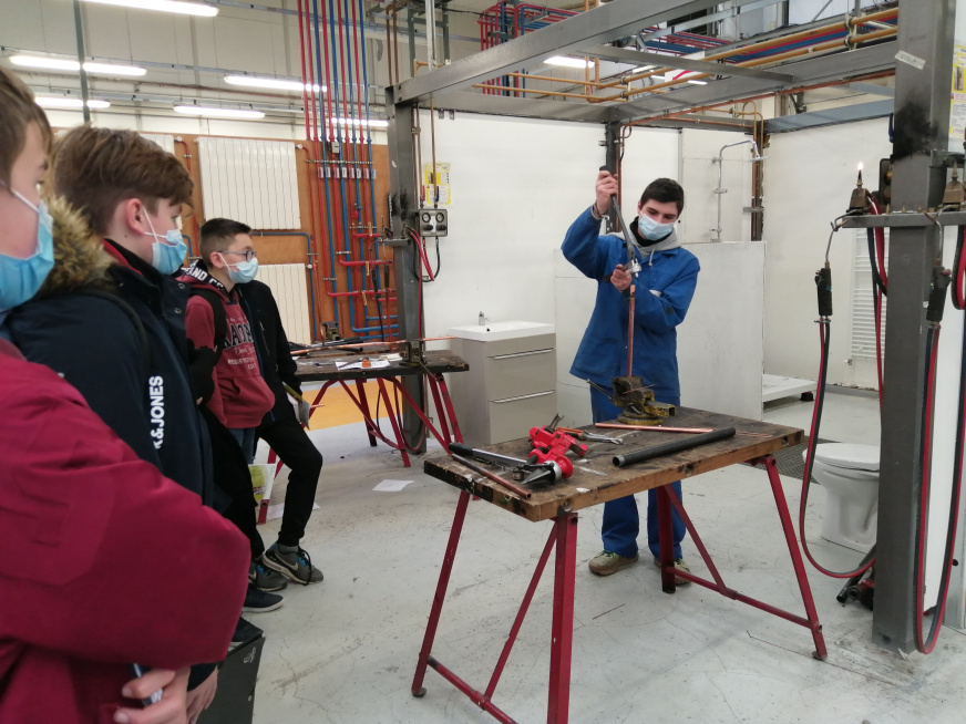 Dans le cadre de leur parcours avenir et pour déjà permettre aux élèves de se projeter dans l’après 3e, les classes de 4e ont été conviées par le Lycée des métiers de La Champagne de Vitré à une après-midi de découverte des locaux et des formations qui y proposées. Accueillis par le Proviseur et ses collaborateurs, les élèves ont pu pénétrer dans les multiples ateliers dont est doté ce lycée, rencontrer des professeurs et échanger avec des lycéens qui suivent des formations accordant une large place aux périodes de stage en entreprise.