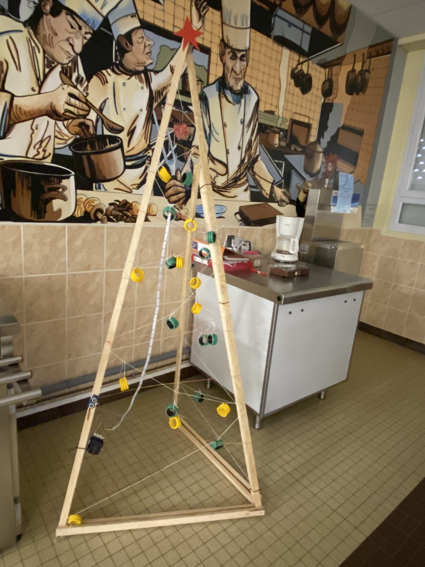 Une mention spéciale pour nos apprentis ingénieurs-concepteurs « du club robotique » qui ont relevé le défi et réalisé en peu de temps, un « sapin nouvelle génération. » Ce sapin stylisé en bois contient également des éléments d’électronique.