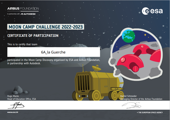 Les élève des classes de 6e du collège des Fontaines ont enfin reçu les résultats du Moon Camp Challenge organisé par l’ESA, l’agence spatiale européenne, et la Fondation Airbus.