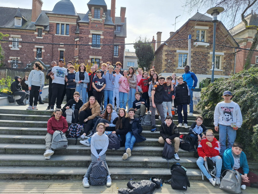 Ce jeudi 21 mars 2024, les quatrièmes ont profité d’une belle journée ensoleillée dans la ville de Rennes pour débuter le printemps. Au programme : visite et animation autour de l’exposition « Incroyable cerveau » aux Champs Libres et Escape game dans l’hypercentre de Rennes sur le thème de l’urbanisation.