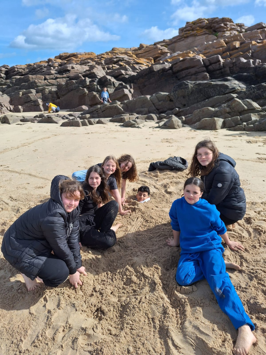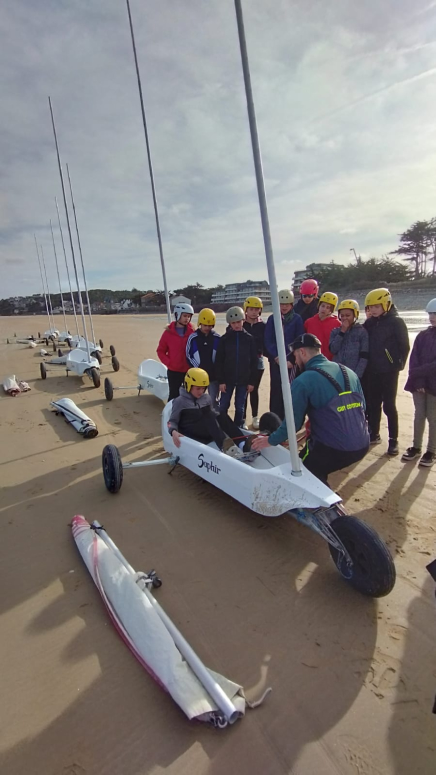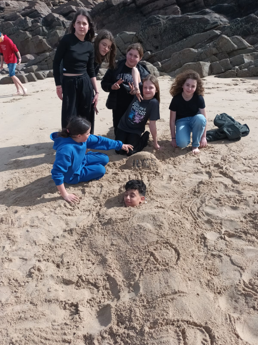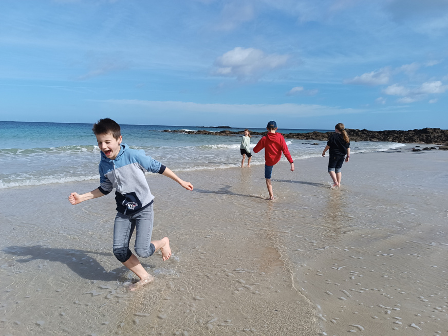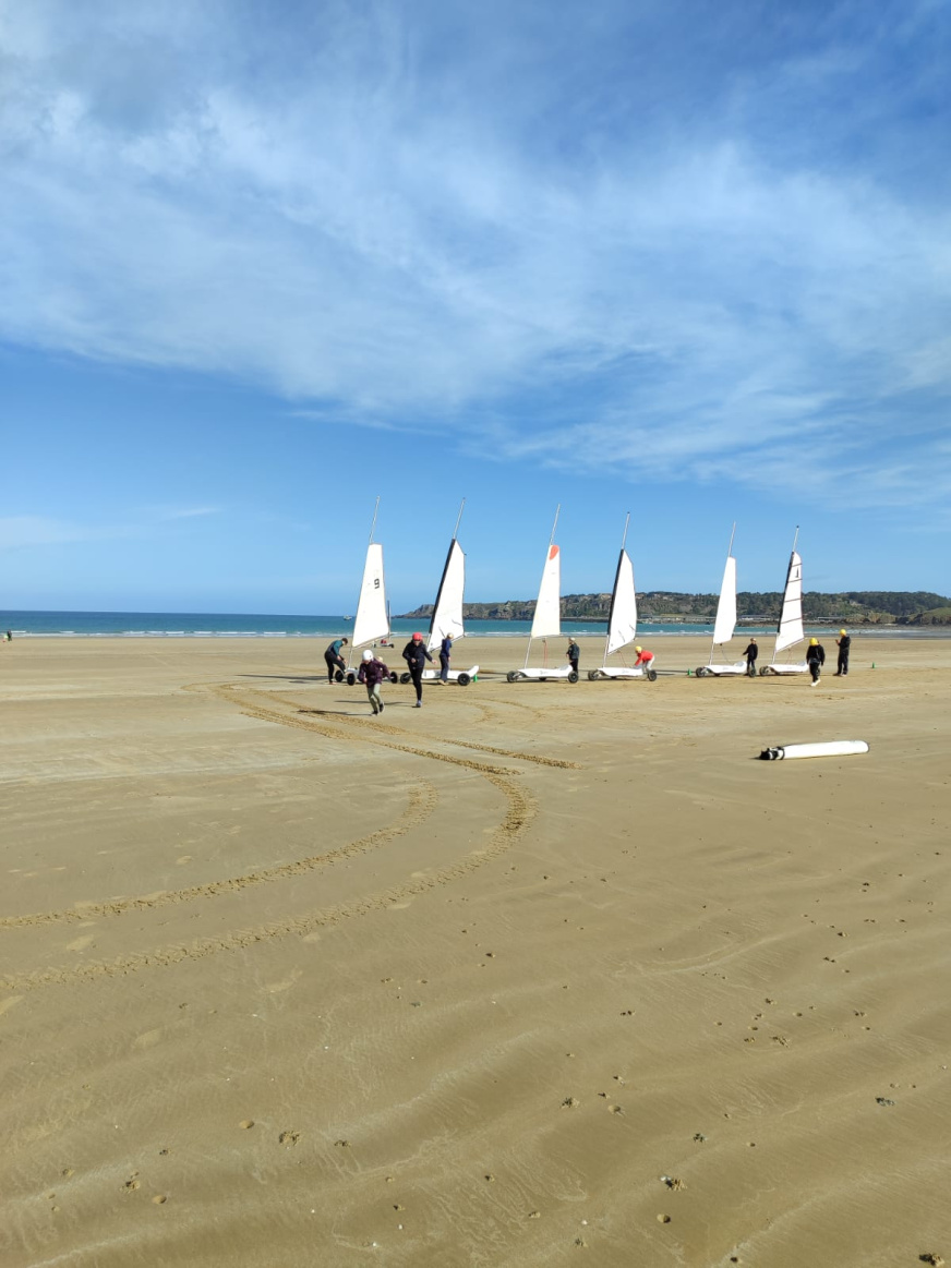 Dernière matinée à Erquy… Sous le soleil ! De nouveau du vent donc char à voiles à la place du kayak. Tout le monde a bien profité de la plage avant de faire le pique-nique de fin. À 14h : tout le monde dans le bus et retour à la maison…