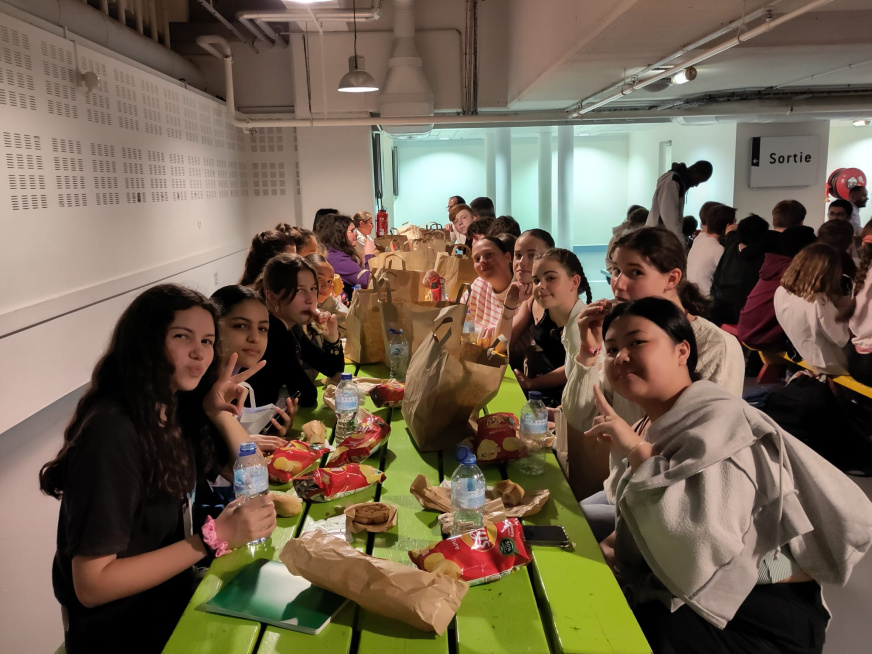 Après une première journée riche en visite et en expériences : découverte du métro sans encombre,… et une bonne nuit de sommeil, tout le monde est en route pour la Cité des Sciences.