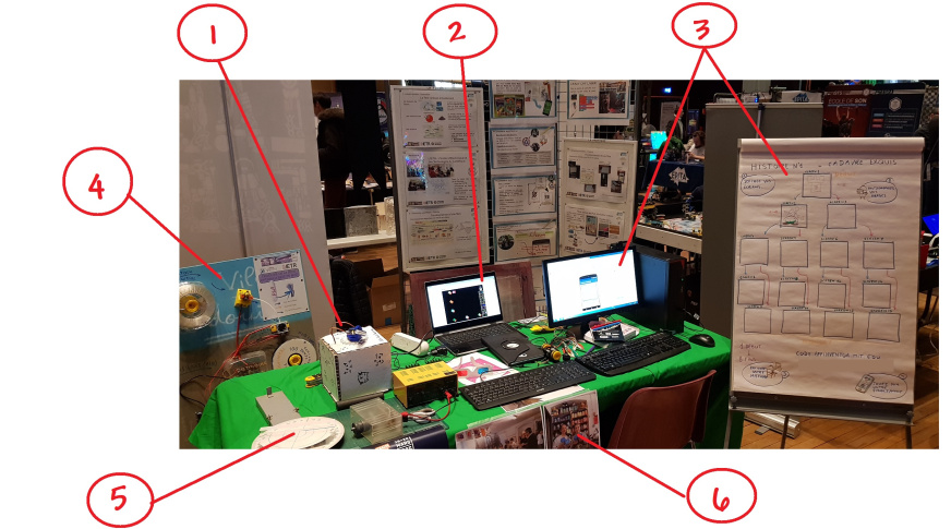 Franc succès auprès des plus jeunes des robots de combat RobCom inspirés du modèle du professeur Braga. La simplicité des RobCom a surpris bien des visiteurs de plus en plus persuadés que seuls des gros industriels ou des génies de l’électronique sont capables de développer des robots.