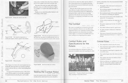 Pas d’électronique, pas de programmation. Que de la bonne physique old school ! La conception de nos robots est librement inspirée de l’excellent livre du professeur de technologie brésilien Newton C. Braga, Mechatronics for the evil genius.